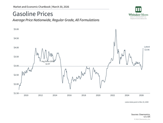 Rising gasoline prices are a burden for consumers and will likely drive headline inflation higher. However, history shows that markets and the economy have navigated past energy shocks. Investors should maintain a long-term perspective, avoid overreacting to daily headlines, and stay focused on their financial plans. Connect with your advisor and make sure you’re aligned on your financial plan, risk tolerance, and current risk allocation.
